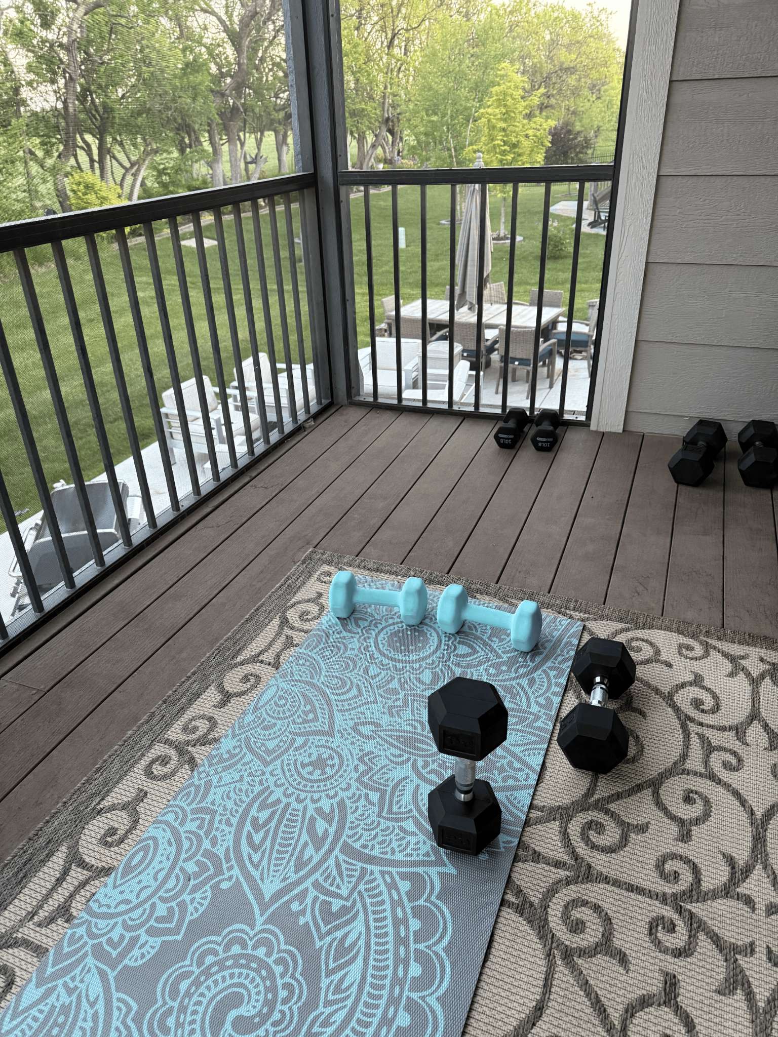 Back then, I didn’t have a dedicated workout space. I ordered three dumbbell sets online, cleared a small corner on the deck, and made a promise to myself: wake up before the kids, before work, and just start.